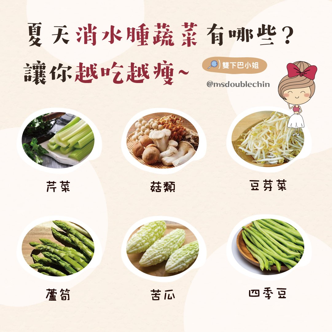 若妳也有水腫的困擾,和雙下巴小姐一起來吃吃這些低熱量的蔬菜吧!