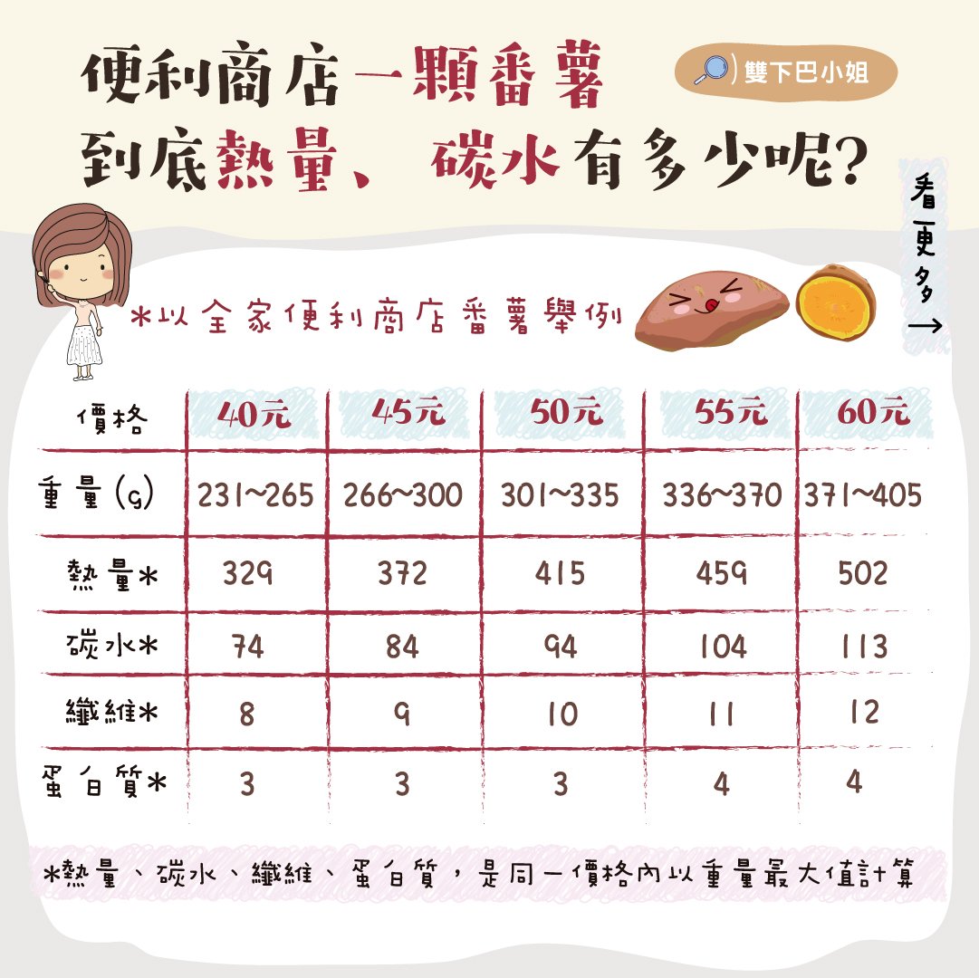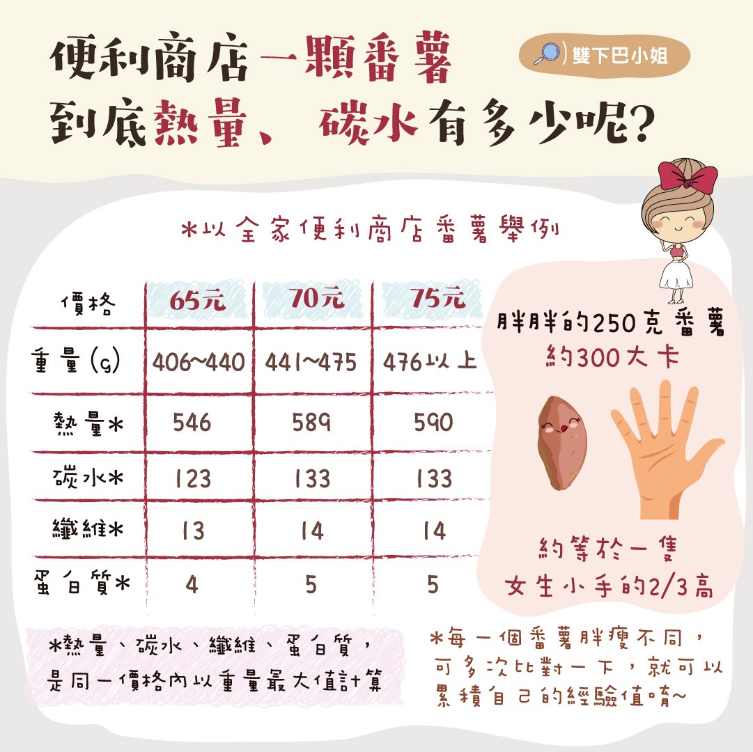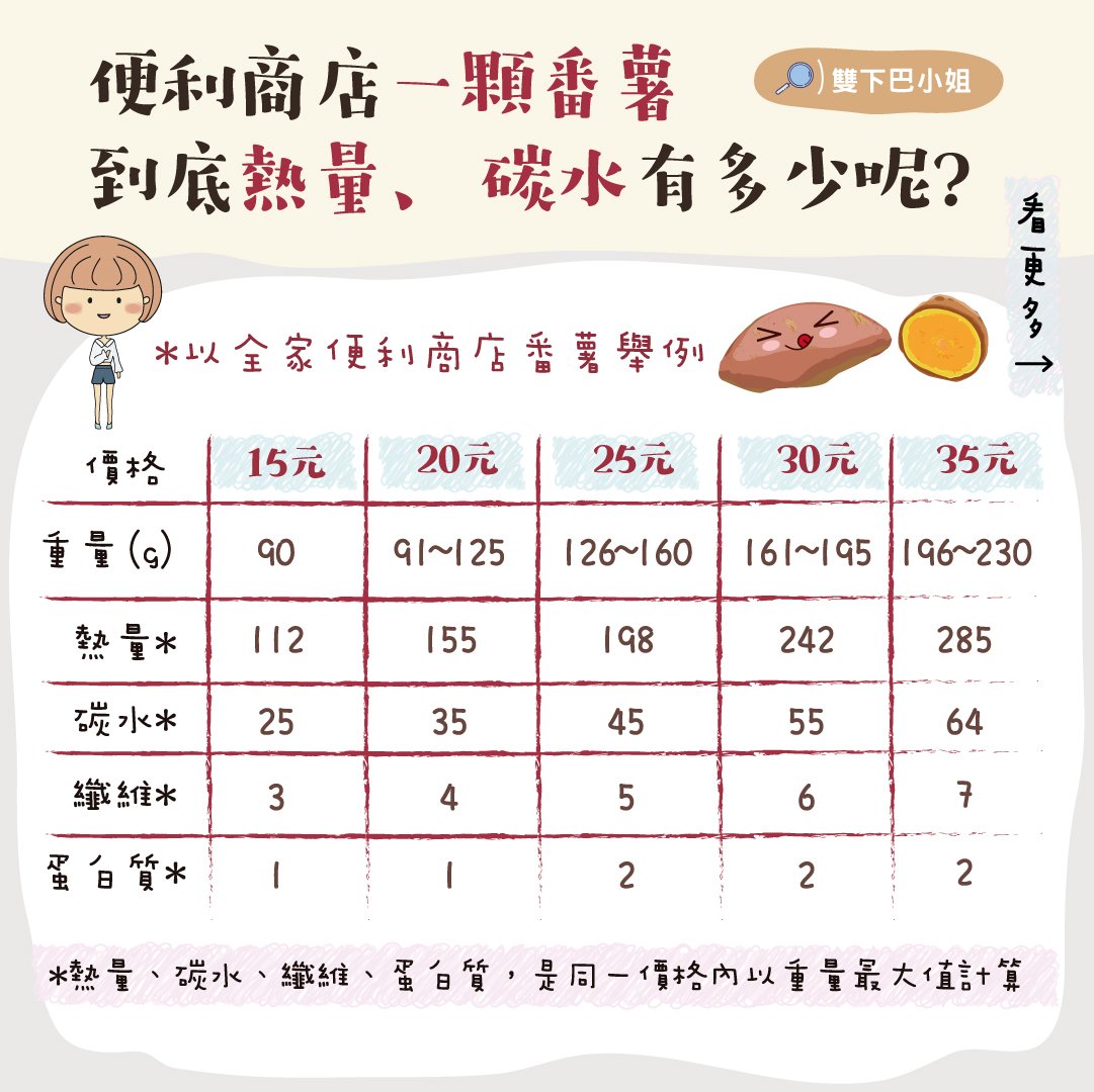便利商店一顆番薯 到底熱量、碳水有多少呢?