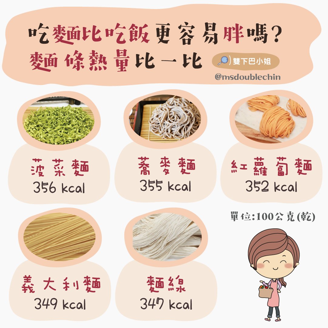 此外,若三餐都吃麵食,容易導致膳食纖維攝不足或鈉含量過多,要多搭配蔬菜、蛋白質補足營養喔。