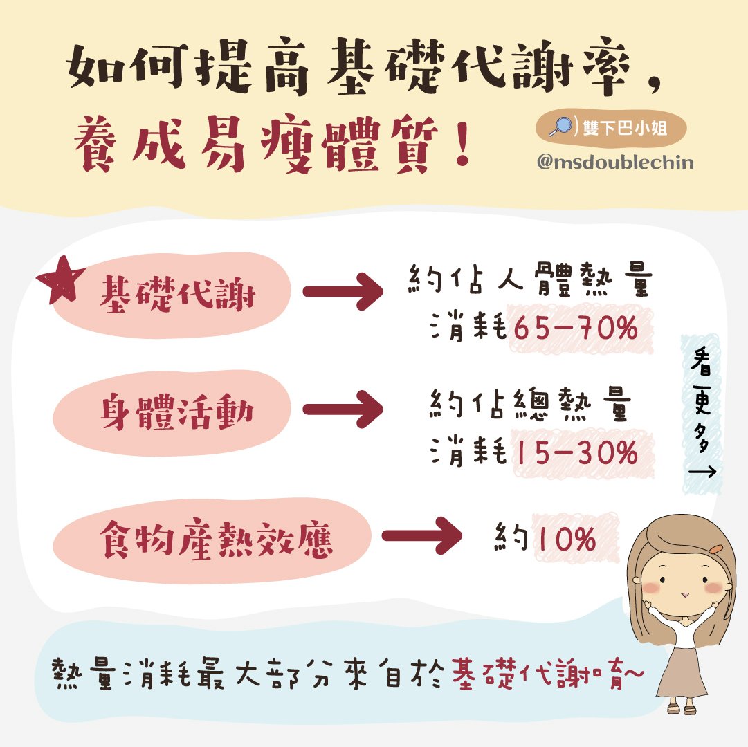 因為基礎代謝佔熱能消耗最大部分,所以基礎代謝低的人,減重就比較吃虧唷~
