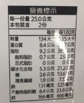 熱量: 134大卡/份 碳水化合物:5.3公克/份