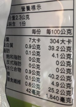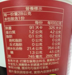 熱量: 91大卡/份 碳水化合物:21.4公克/份