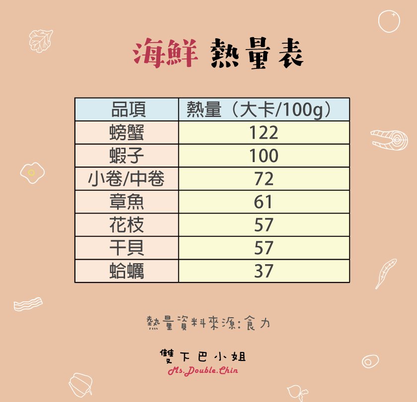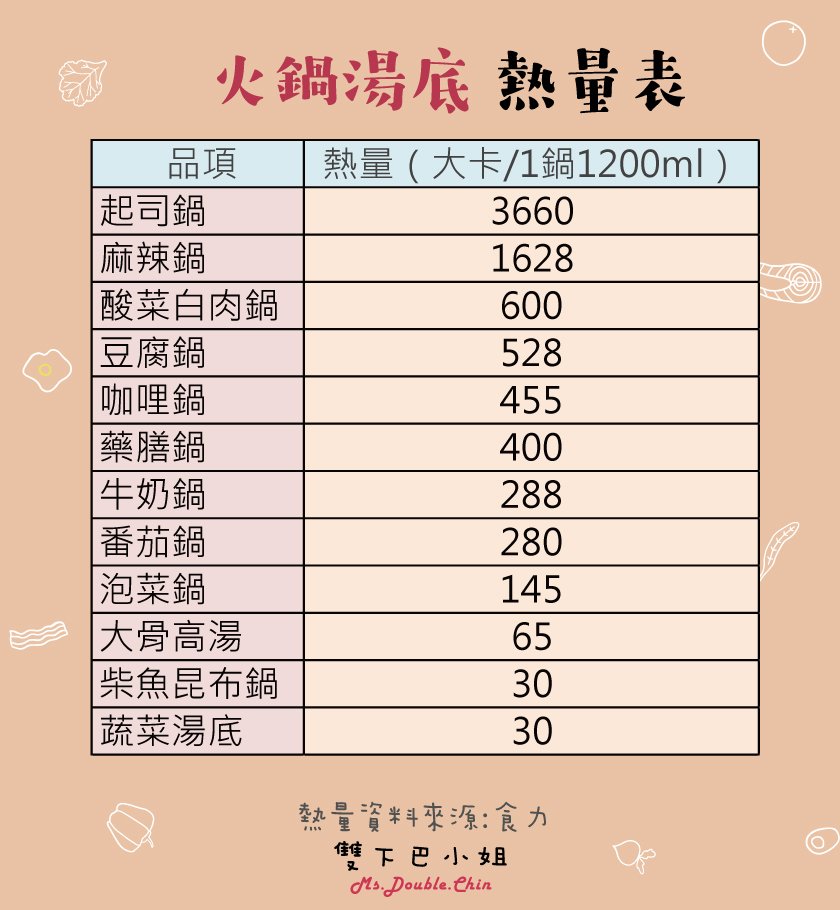 吃火鍋的全熱量表(湯底、肉片、火鍋料)